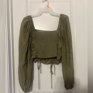 Super cute and fun fitting balloon sleeve top with smocked back and side zipper closure