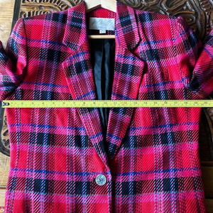 Vintage Lord & Taylor Magenta Pink Plaid Viscose Cropped Boxy Blazer 6.