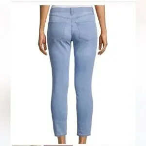 Ankle skinny jeans featuring a cool blue wash.