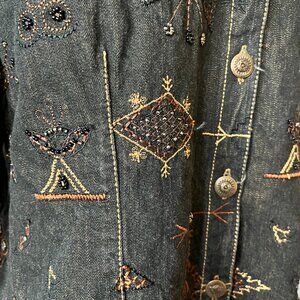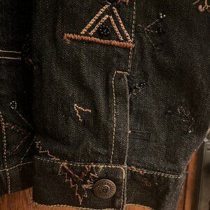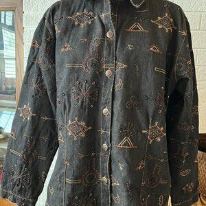 Chico's Lined Black/Brown/Copper Denim Jacket Embroidery Beads