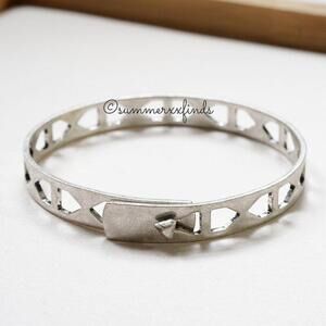 A traditional bangle bracelet gets turned on its head, thanks to cool cutout details. Stacking is highly encouraged.