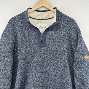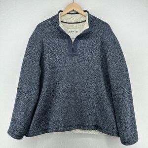 ORVIS Sweater Mens XL Brighton Sherpa Fleece Lined 1/4 Zip Marled Pullover Blue