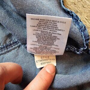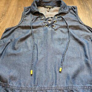 Ellen Tracy Chambray Top Womens Size Small Tencel Lace Up Sleeveless Blue Shirt