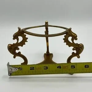 Vintage Solid Brass Scroll Display Stand for Paperweight Orb Sphere Egg Candle