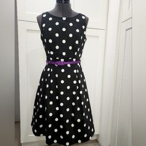 Polka Dot Black Dress with Purple Belt