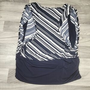 Chicos Knit Kit Stripe Variance Topper Size 3 Large Banded Hem Shirred Navy NWT