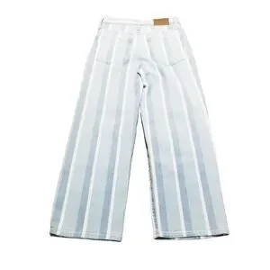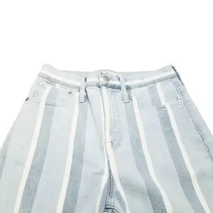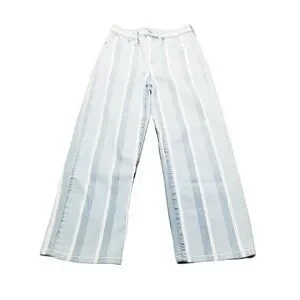 Madewell Jeans Women's 25 Slim Wide-Leg Crop Striped Denim Light Wash (27x25)