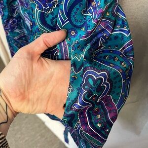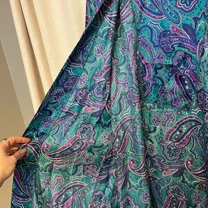 Vintage 90s Teal Purple Floral Paisley Silky Colorful Kimono Robe