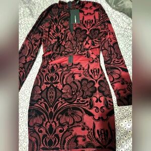 FN Burgundy and Black Bodycon Dress with Long Sleeves