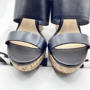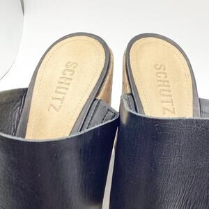 Schutz Kai Soft Black Leather Slip On Cork Wedge Sandal 10 NEW Dustbag
