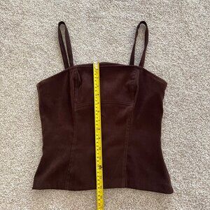 SOLDSuede Square Neck Fitted Brown Top With Zip Closure Small