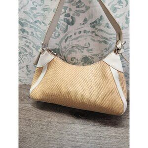 Fossil 75082 Woven Straw Fabric Handbag Purse w/ Leather Trim 13"x8"x4"