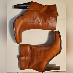 Cole Haan Kendal Short Boot Brown Leather Block Heel Pull On Comfort Bootie 8