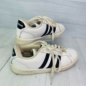 Adidas Cloudfoam Mens NEO AW4287 White Black Stripes Lace Up Tennis Shoe Sz 8