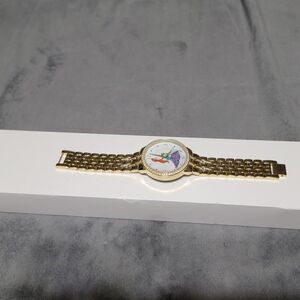 The watch face still has plastic protector on it, the watch works but needs a new battery.