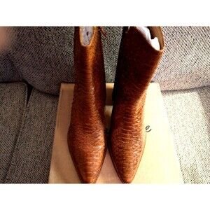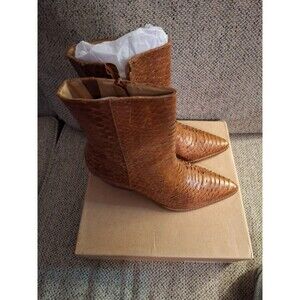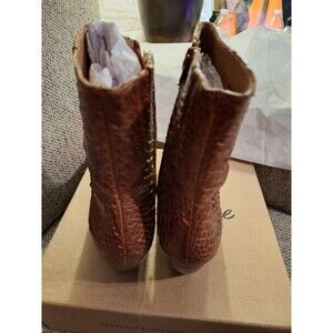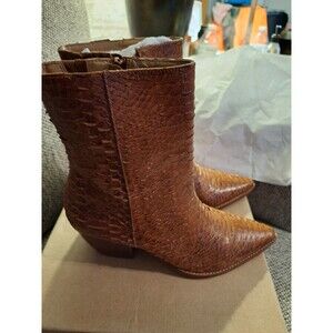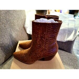 Matisse Caty Women's Size 10 Leather Snakeskin Pattern Brown Heeled Bootie Block Heel