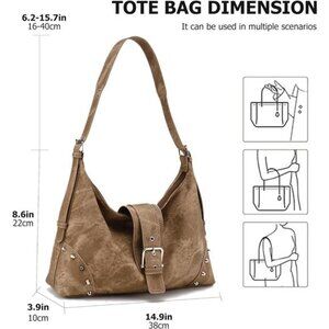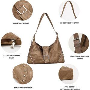 *Trendy Hobo Bag: Premium vegan leather with a vintage texture, while the studded accent on the front adds a touch of fashion flair, and ensuring you stand out in a crowd.