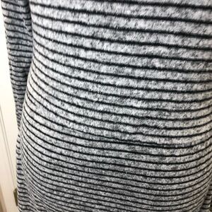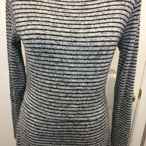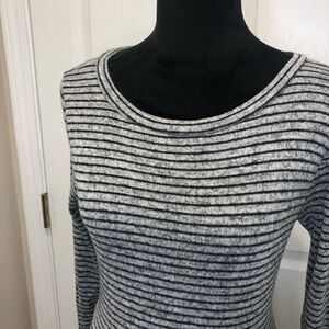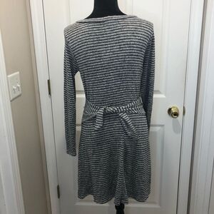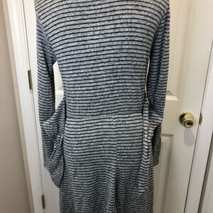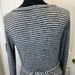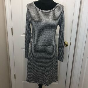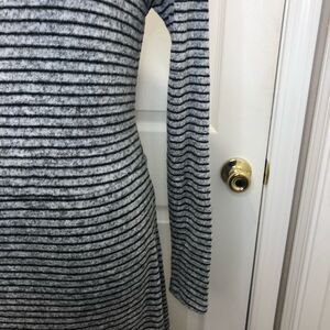 Alya gray and black striped long sleeve midi dress, ties at waist. Lightweight, pit to pit 17in, sleeve 25in, length 37in, waist unstretched 12in, size xs. ⭐️⭐️