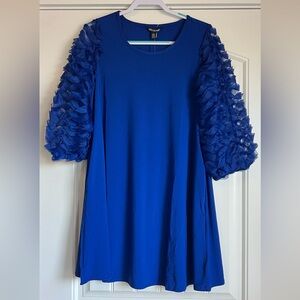 NWT Nina Leonard Mesh Textured Balloon Sleeve Mini Trapeze Dress Sz L