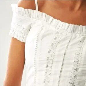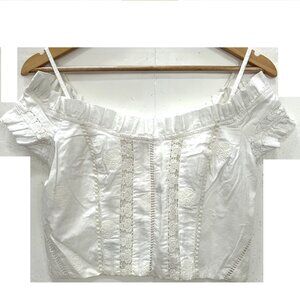 Anthropologie Off Shoulder White Corset Top is your go-to for effortless style and comfort. It's a versatile piece for casual outings, brunch dates, or springtime strolls. Lace Ruffle Cropped Blouse.