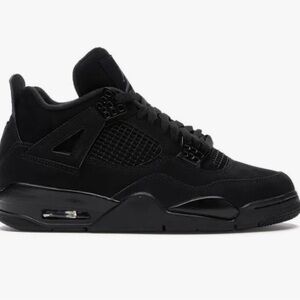 Sleek and stylish black sneakers. Iconic Air Jordan 4 design. Perfect for casual wear.