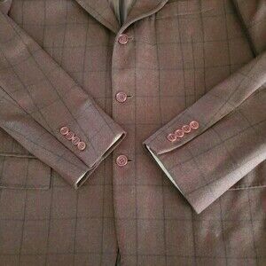 KITON Cashmere Plaid 3 Button Windowpane Brown Red Blazer Jacket Coat 52 IT 42 U