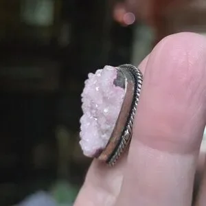 Vintage Style rose quartz Druzy sterling Ring sz8