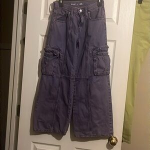 High-Waisted Super Baggy Wide-Leg Cargo Jeans for Girls 14 Washed purple