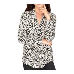 Tyler Boe Small Carson Long Sleeve Cheetah Animal Print Silk Blouse