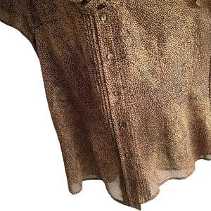 JONES NEW YORK Leopard Print Short Sleeve Blouse Tie Neck Brown Black 8
