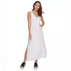 DKNY Summer White Linen Maxi Dress