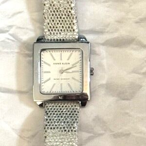 Brand New Never Worn NWT Anne Klein Sparkly Silver Leather Strap Watch