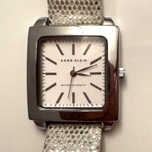 Anne Klein Women Silver Glitter Sparkle Square Bezel Watch Leather Band NWT