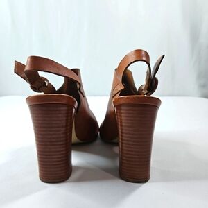 Dune London Brown Leather Buckle Strap Mules Sz 38