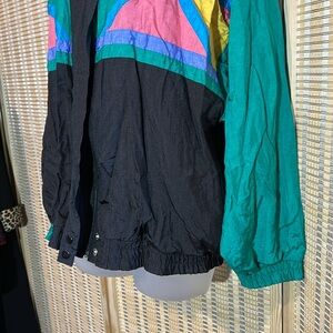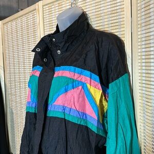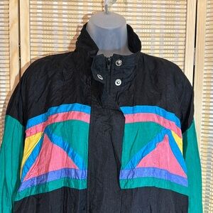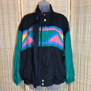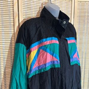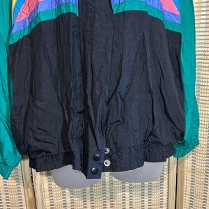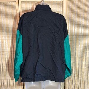 Ashley Hill Vintage 1990s Y2K Black Green Colorblock Zip Front Windbreaker Large