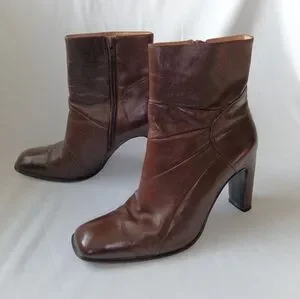 3.5" Heels Brown Real-Leather Ankle Zipper Boots