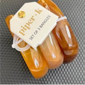 NWT ⚜️🤎⚜️ Piper K Set of 3 Bangles, Marbleized Amber-Brown Shades, Chunky