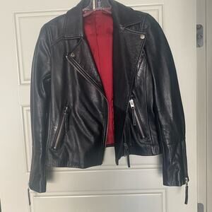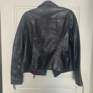 Topshop Black Dolly Real Leather Biker Jacket Motorcycle with Zippers Size 6 Small