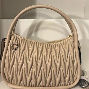 Quality handbag, double handles, 2 shoulder straps. one leather.
