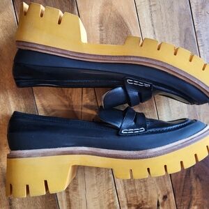 NWOB. Leather loafer with hip yellow sole and exposed stitching. So good.