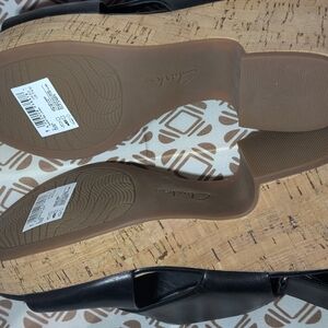 Clark's Black Wedge Sandals with Crisscross Straps and Cork Heel