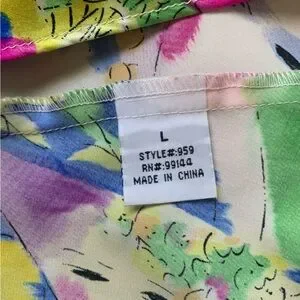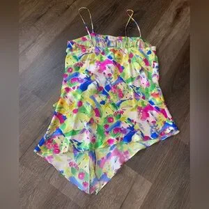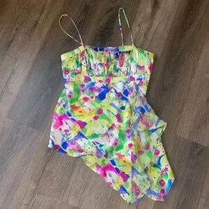 Silk abstract tank top Lapis ruffled detail multi colored size Large