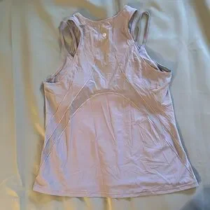 Size 10 Sexy lululemon tank top built in bra, mesh details. Measurements in pics. A beautiful Lavender Gray color.