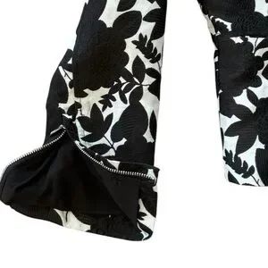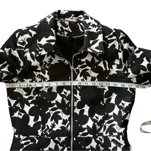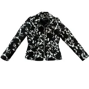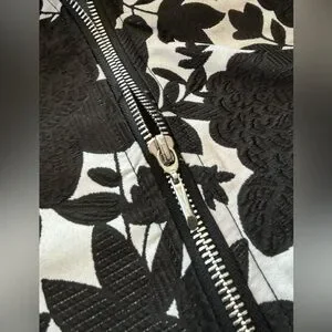 WHBM Brocade Black & White Zipper Jacket Coat size 0 xs