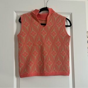 Coral and tan sweater vest with super cute retro pattern. No tag but should fit small.