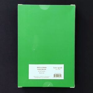 Set of 5 Kate Spade pens, black ink, in sealed box. This set of Kate Spade click pens features black and white polka dots, stripes, and the iconic apple motif. Great gift item!