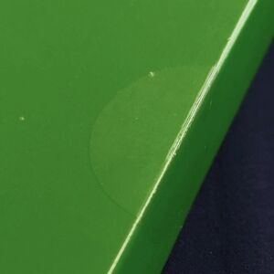 Box has very minor cosmetic flaw on the back corner from shipping. You can see the slight dent and peeling of the green cardboard coating in the upper right of the back photo.
