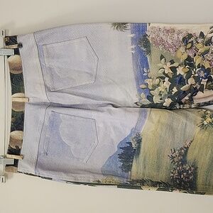 St John Sport Rare Floral Castle Country Print Straight leg Denim Pants Size 8