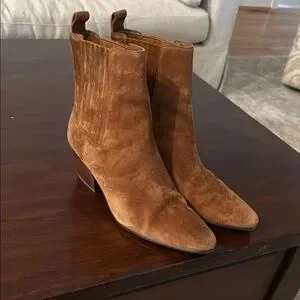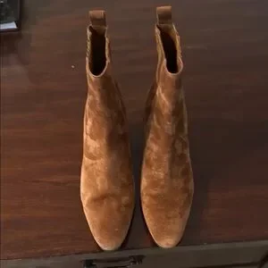 These J. Crew ankle boots feature a rich brown suede material that offers a soft and luxurious feel. Designed in a Chelsea style, they include elastic side panels for easy wear and a low stacked heel for added comfort.