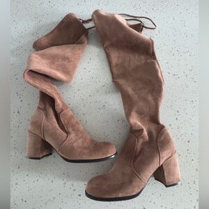 Step out in style with these elegant black over-the-knee boots. Perfect for any occasion, they offer both comfort and sophistication.